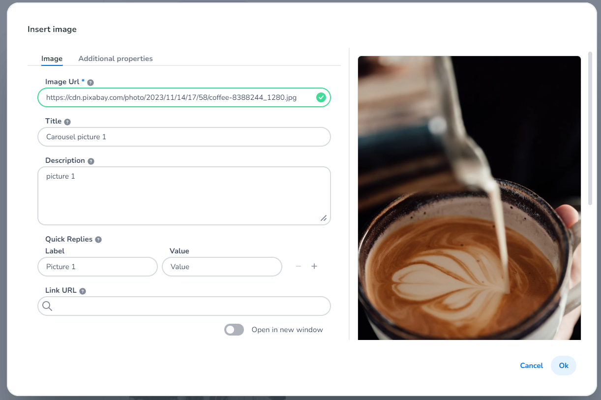 - Two or more images in the CMS will be displayed as a carousel in Web Conversations.