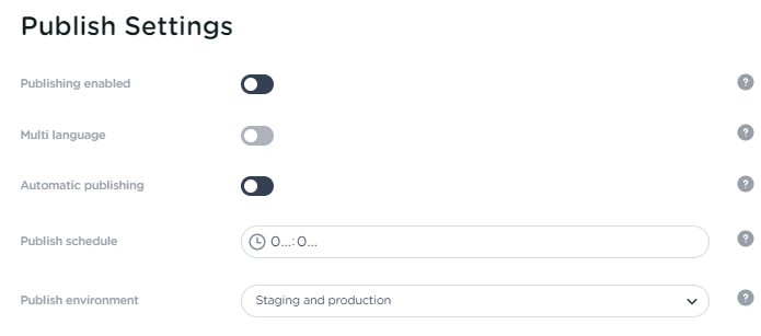 Note: if the automatic publish has been switched off, the publish button will still be available to push the project live manually. If you would like to have this button disabled during a content freeze, your Admin will also need to disable Publishing.