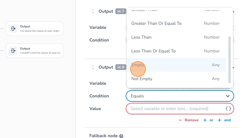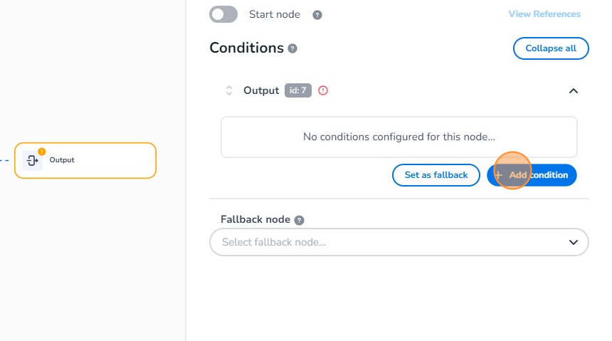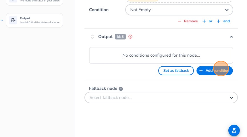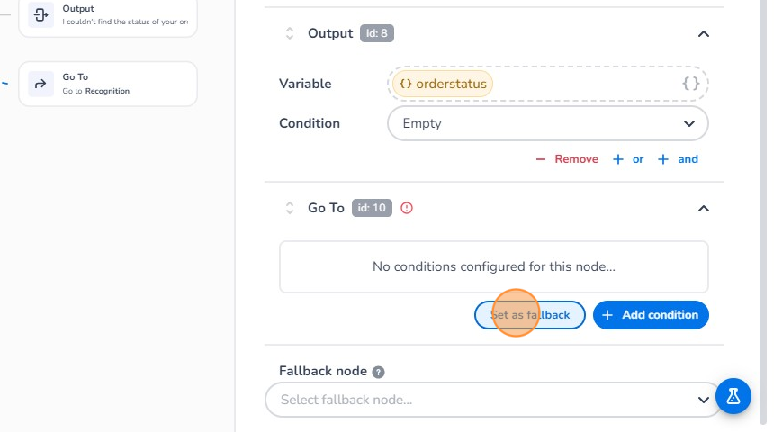 82. Click "Set as fallback". What this will do is that if the logic doesn't pass the go to node will function as a fallback in this scenario.
