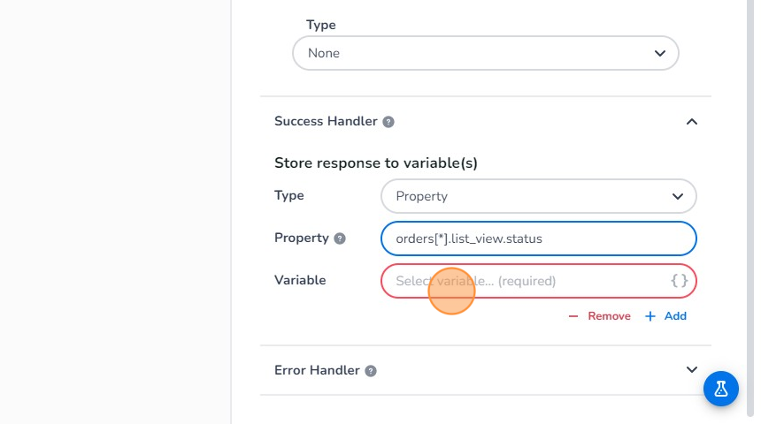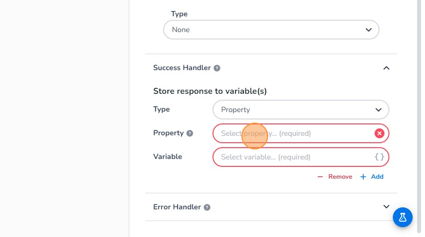 53. Click the "Select property... (required)" field and select a property from the response using JMESPath.