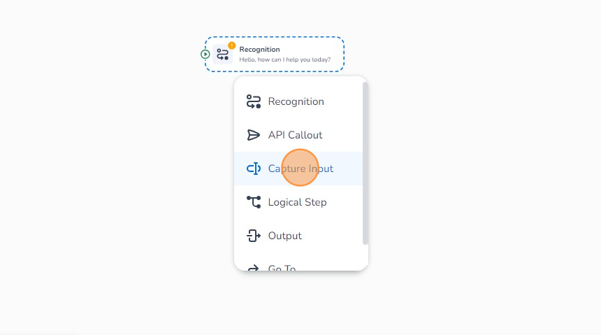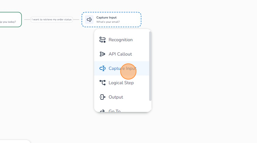 - Asks the end-user for input using the “Capture Input” node type and validates that same input