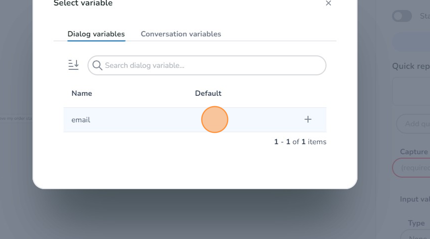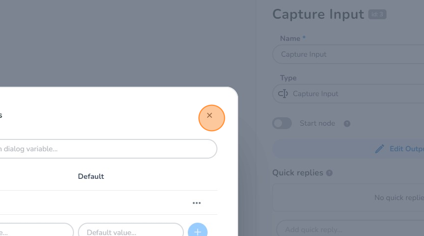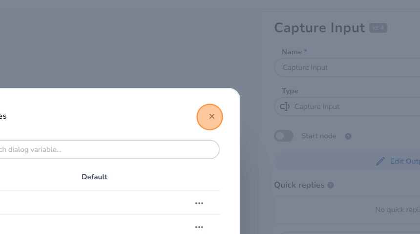 24. Go back to your capture node and select the dialog variable which you have created in the previous step. This will capture the input of the user into this variable.
