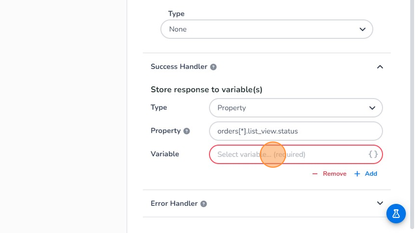38. Click the "Variable name..." field and in this case I'll add a variable where I can save the order number into.