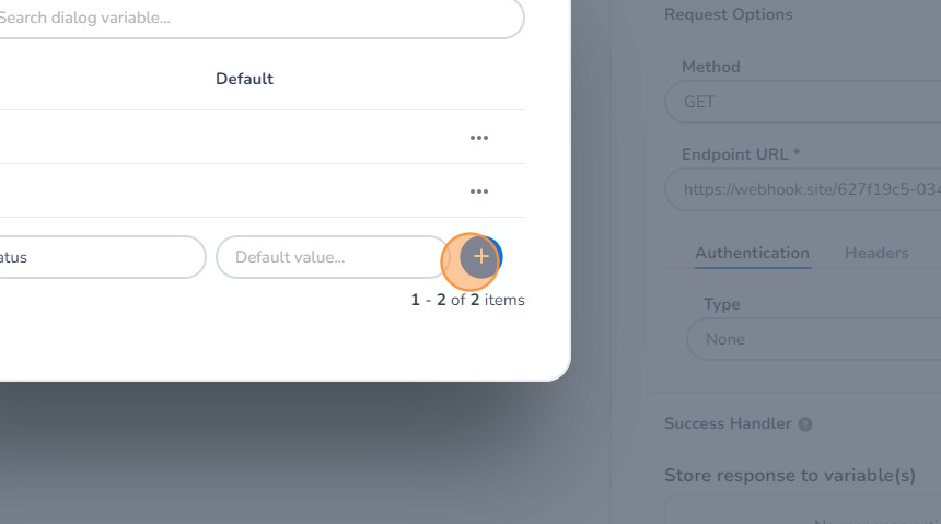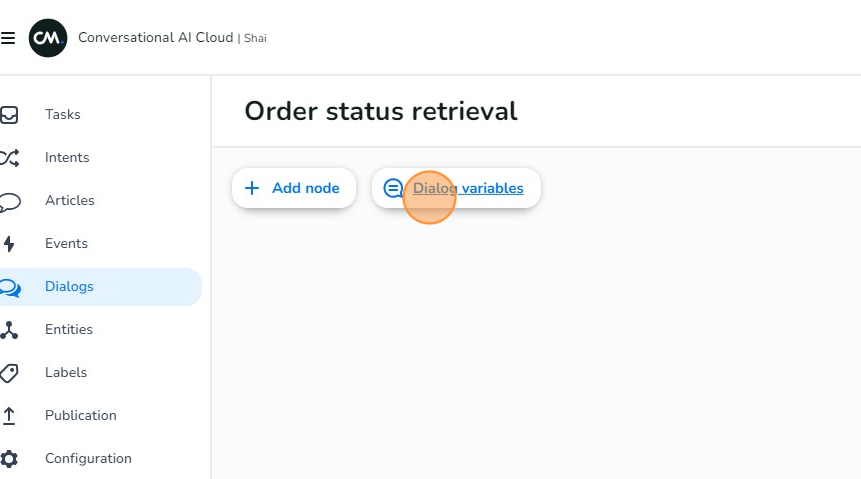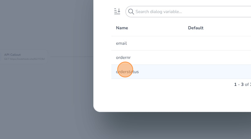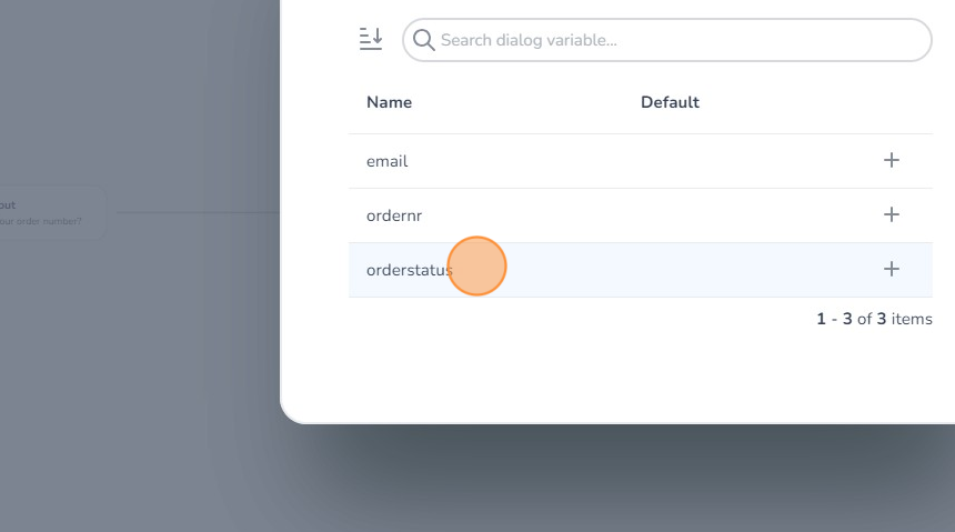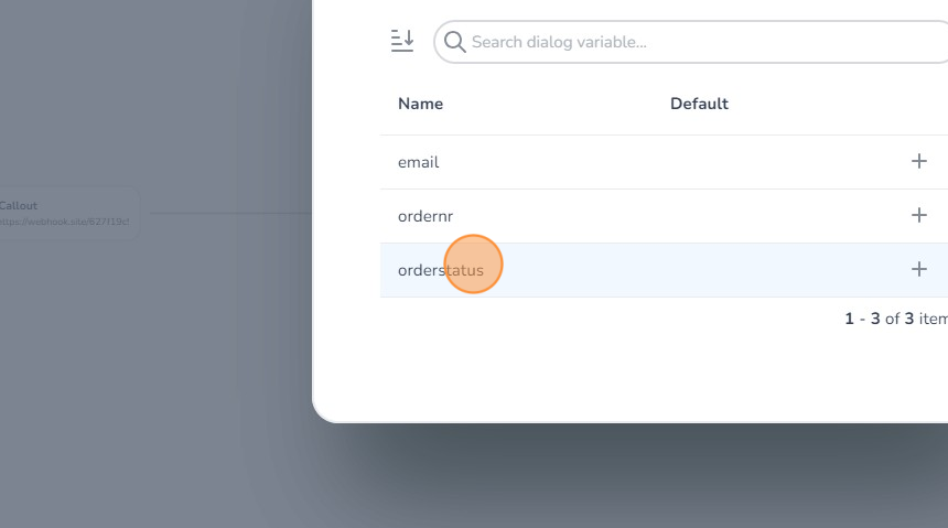 46. Click "Dialog variables" and create a new dialog variable. In this case a variable where we can save the order status into.
