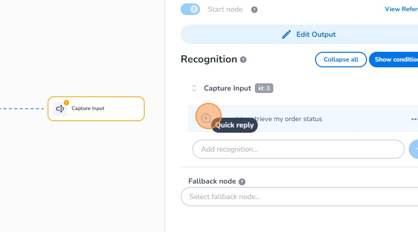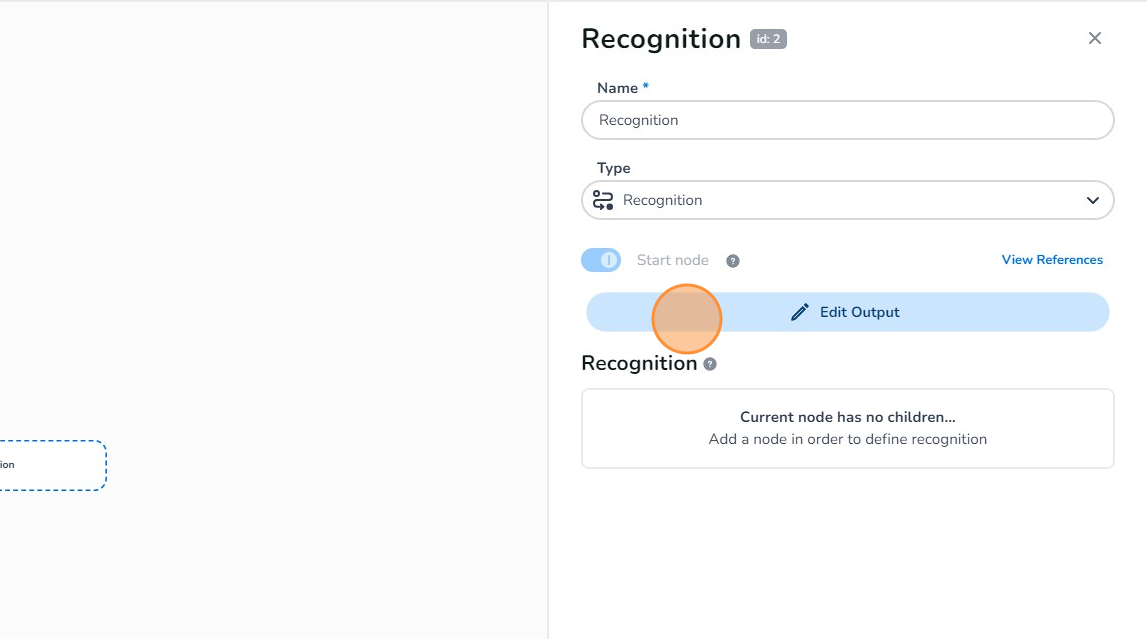 6. After adding the recognition node click on "Edit Output" to edit the output of this node.