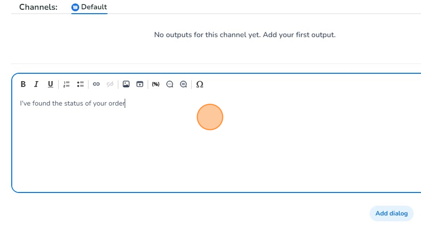 12. In this dialog we want to make it possible to retrieve an order status. In this case I'll fill: "I want to retrieve my order status" for the recognition.