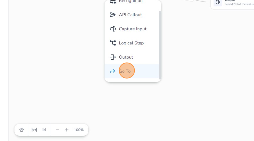 - Should the order not be found, we’ll provide the customer with the ability to go back to the start of the dialog using the “Go To” node type, or to wrap up the dialog.