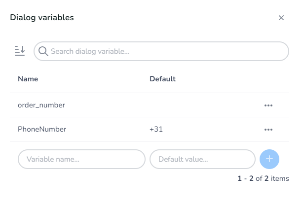 These variables can be easily defined from within the dialog editor and can optionally have a default value that’s pre-filled once the dialog starts.