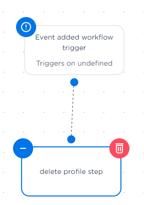 To make the workflow carry out the right steps in the right order you have to connect them with the dotted lines. You can easy drag them from the blue points to each other. You have to connect the bottom blue dot with a top blue dot of your next step.
