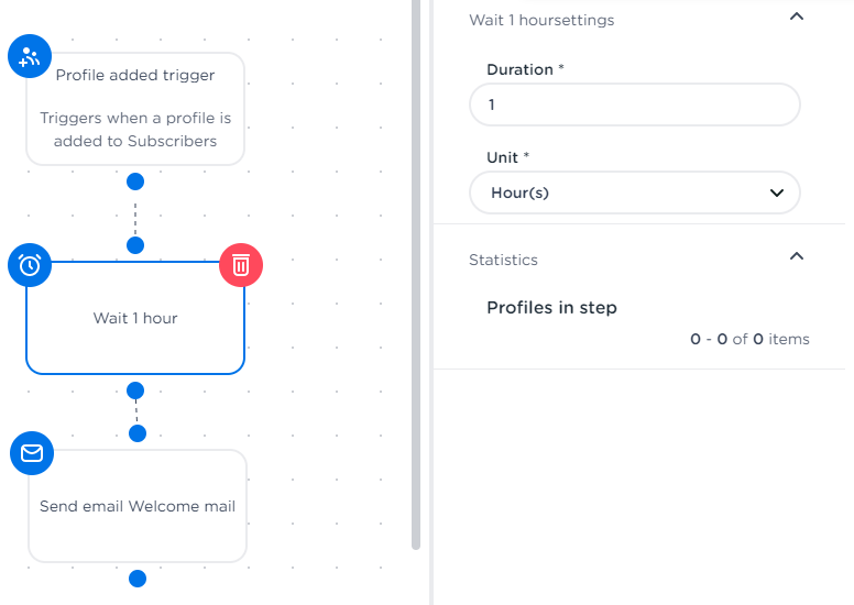 Someone subscribed to your newsletter and you want to wait 1 hour before sending him a welcome email.