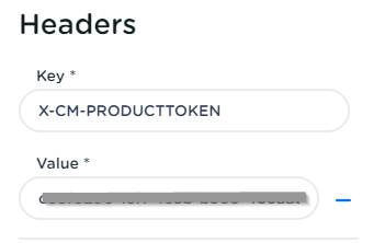 In general, basic header authentication is needed to post events, therefore you need to enter the key and the value. If you are trying to post events internally, CM.com products mostly use the X-CM-PRODUCTOKEN, this can be found in the target API.