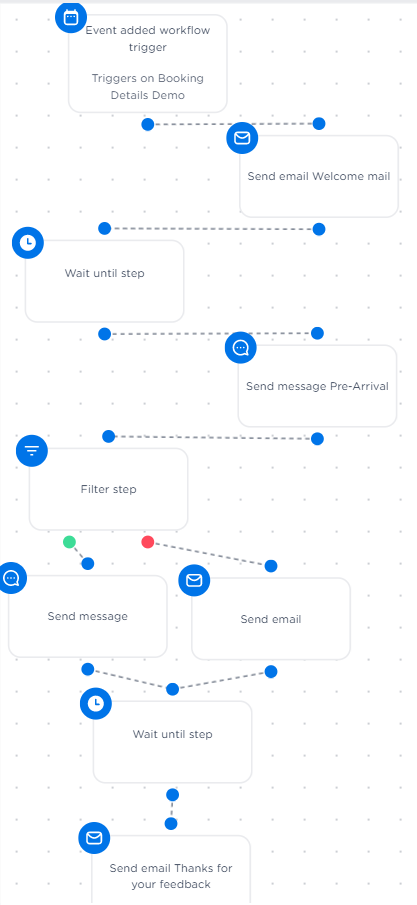 We can use a workflow for hotel reservations. The workflow is being triggered by a new reservation, we then send him a welcome email.