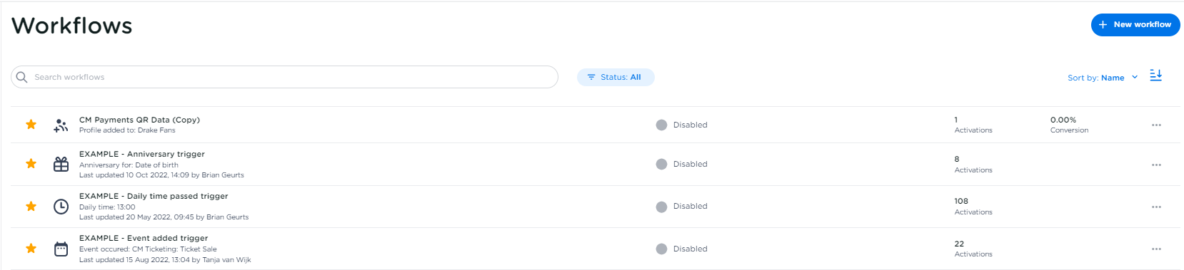 The workflow overview gives you a quick insight into the below items and even allows you to favorite your best workflows.