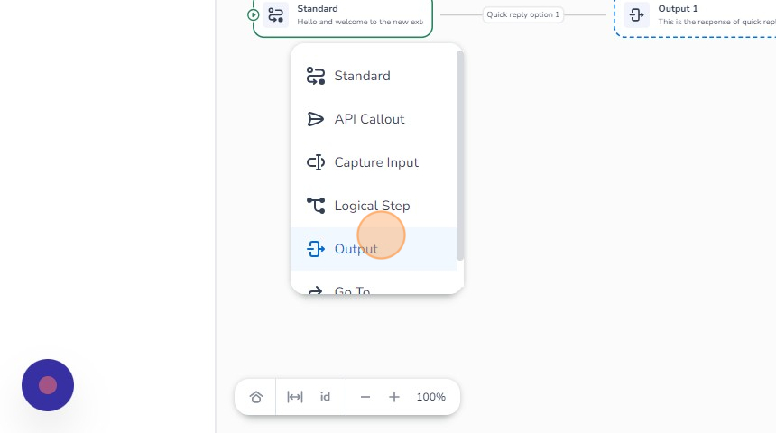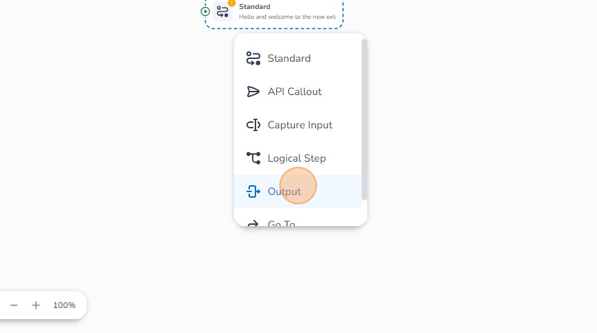 Next, we'll incorporate a basic output. Select "Output" to proceed.