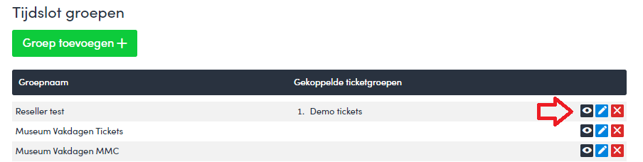 - Klik op het zwarte oogje van de desbetreffende tijdslotengroep.