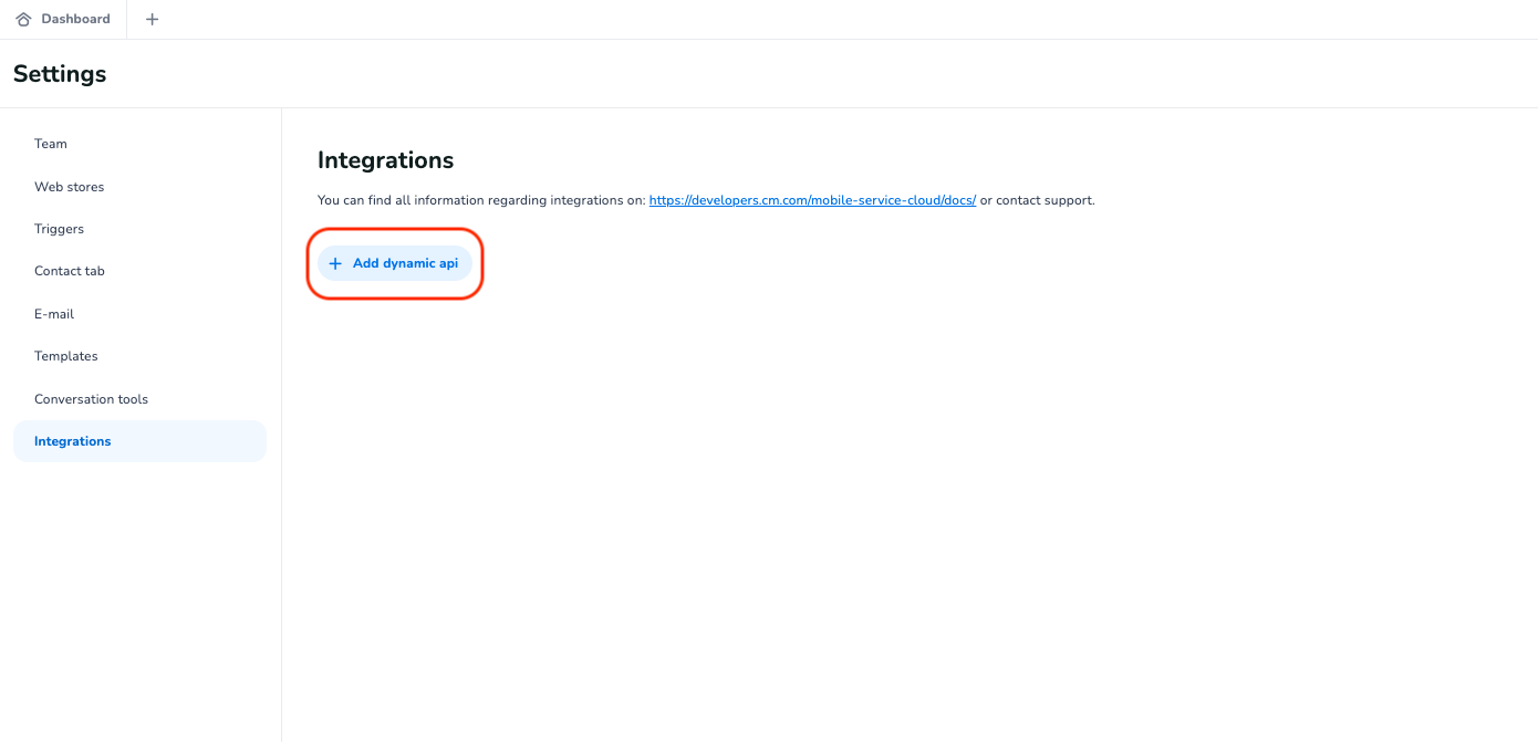 Now navigate to the "Integrations" section, and click on 'Dynamic API's'