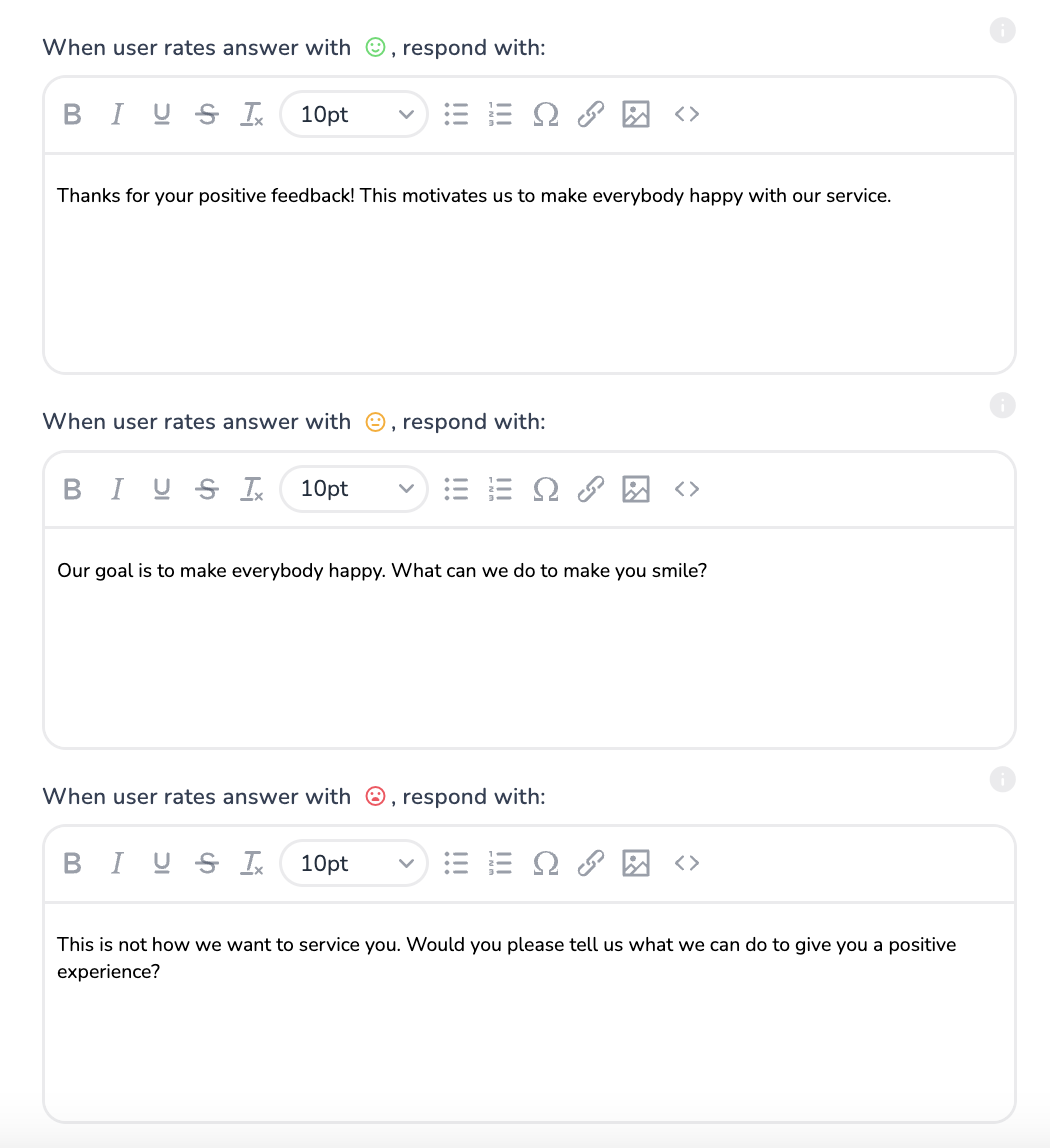 The fields with titles relating to Widget (e.g. Offline mode widget) and Rating (e.g. Response after rating) are conversation templates that service the scenario's in which customers interact with the native chat widget. For every scenario, Online, offline etc, a specific response or text can be replied to tailor the expience to the scenario.