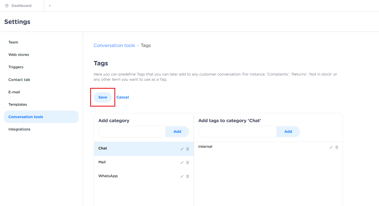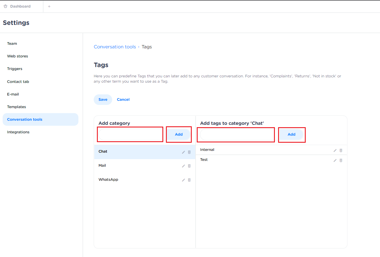Within Mobile Service Cloud you have the ability to add tags to conversations. This is mandatory in most cases because the feature "Mandatory tagging" is enabled within most customer subscriptions. This ensures that conversations are not archived without any tags. On this card we will explain how to add, edit or delete tags and/or their categories.