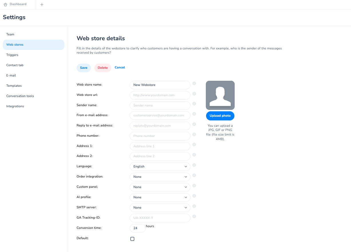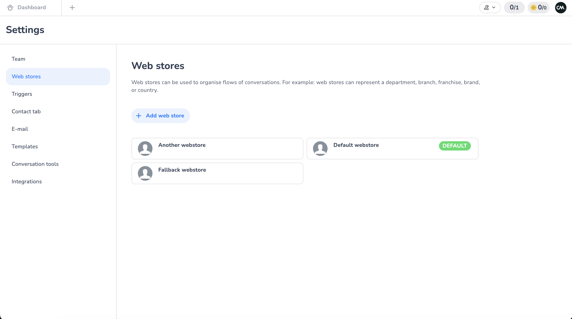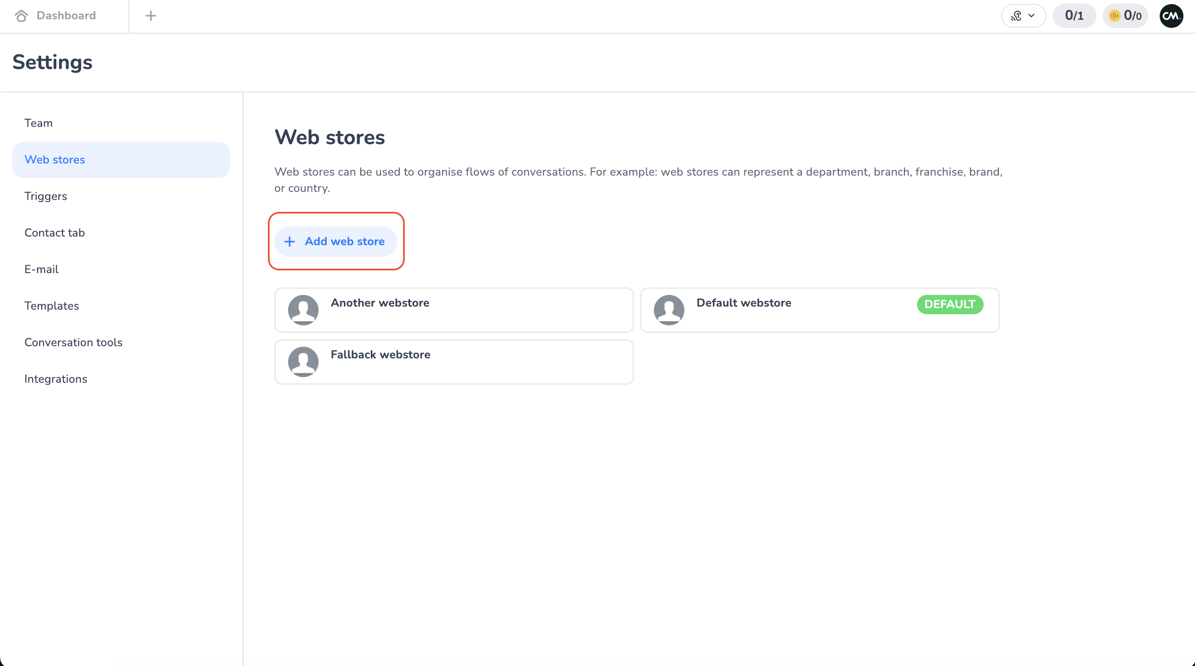 When a certain volume of conversations is reached, it may become useful to increase the amount of web stores you have and separate the flows of conversations to more effectively operate. Therefore, you might want to create a new web store