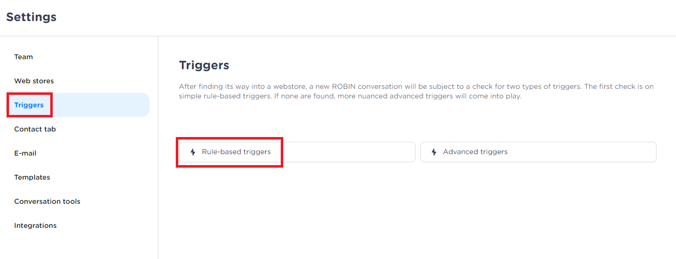 Navigate to Settings -> Triggers -> Rule-based triggers.