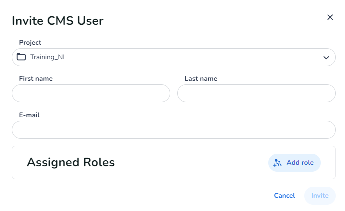 Follow these steps to invite a user to Conversational AI Cloud CMS or add them to one of the projects you administrate,