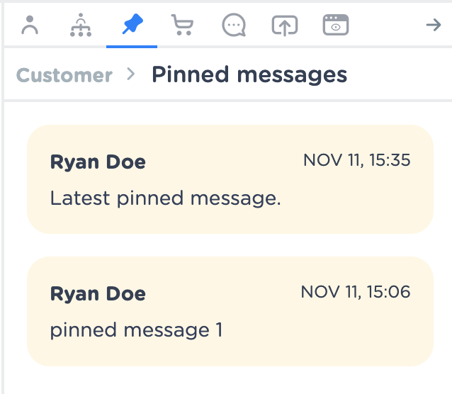 You can get an overview of all the pinned messages by clicking on the pushpin in the customer panel.