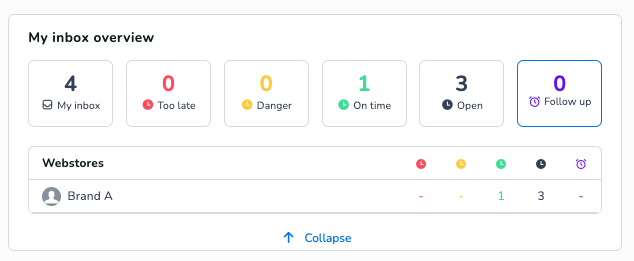 Once a conversation reaches its 'in inbox' time, the conversation will reapear within the personal and team inboxes. The conversation will now be placed in the "follow up" category. This means that it requires you attention, as the SLA will now start running again. To quickly identify conversations the need to be followed up, the 'Follow up counter' in the personal and team inbox will indicate if any conversations have this state.