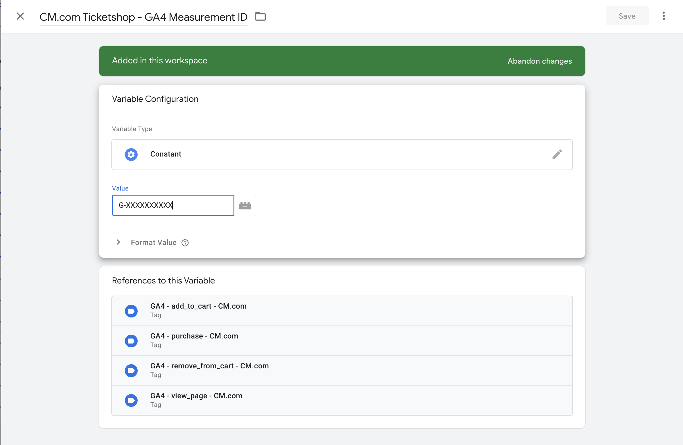 Select the the constant of the tracking platform you want to use. Upon opening a constant, replace the tracking ID (xxxxx) into your own tracking ID, to enable tracking for this platform.