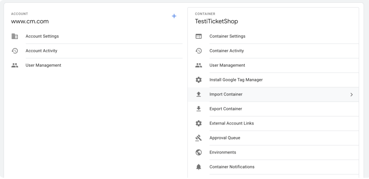 The container is a set of presets for the most frequent triggers and tags used in these two tracking solutions.