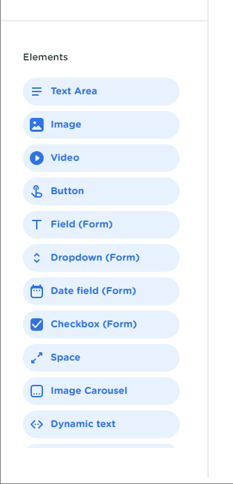 1. Create a Page using the elements on the left bottom corner. Most used elements for creating a Page are: