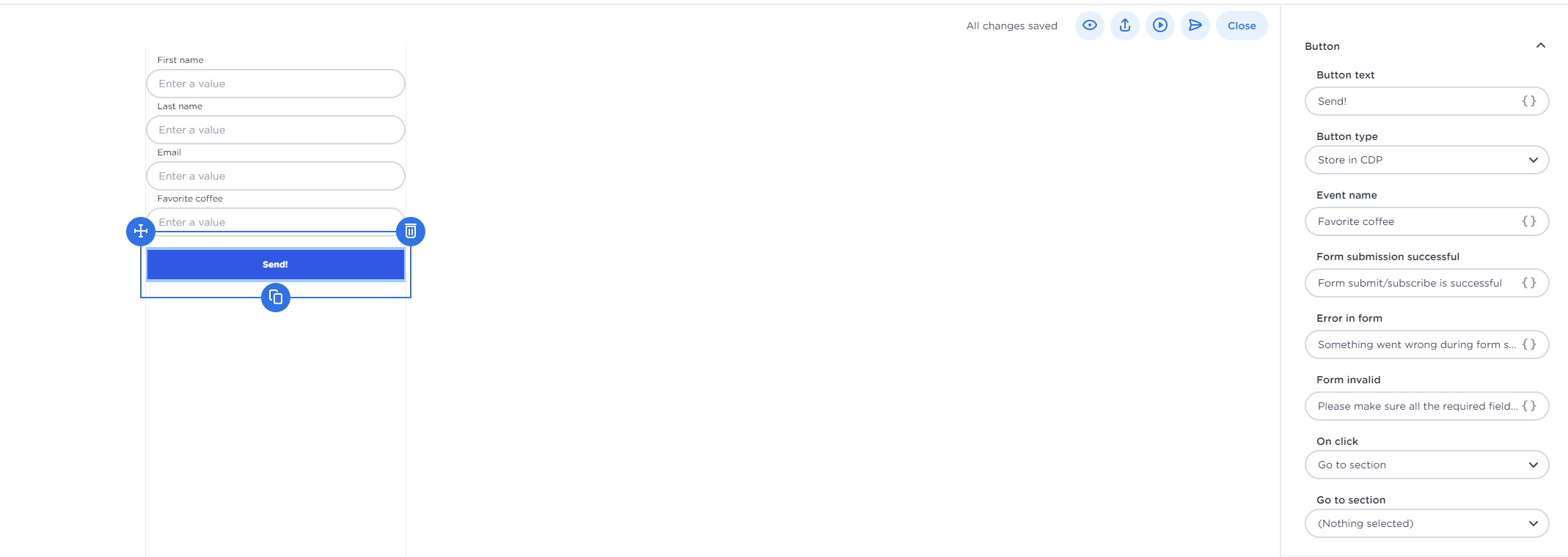 2. Add a button element on the bottom of your form to send the information filled in the form to the Customer Data platform