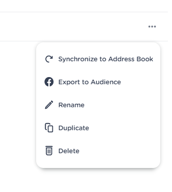 Go to segments and select the 3 dots. A navigation menu will appear where you can select synchronize. This allows you to reach people through email and mobile campaigns.