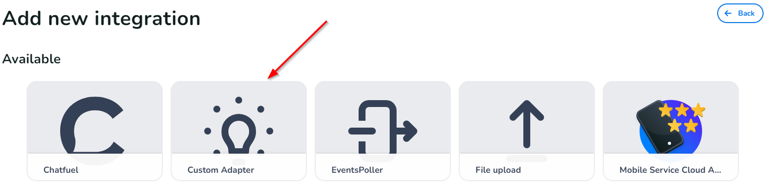 From the sources menu in the CDP click on the plus sign in the top right corner and click on the Custom Adapter tile.