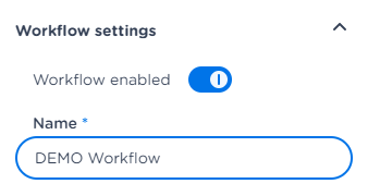 On the right side you can find the workflow settings. Here you can enable and disable the workflow and give your workflow a name.