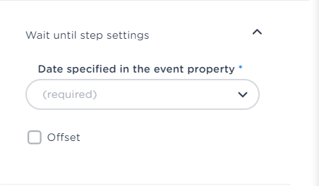 - Wait until step: this step is an additional wait step that waits until a certain date of event. When selecting this step, please note that there has to be a date of event in the trigger of the workflow. Therefore, it is advised to use an Event Added trigger.