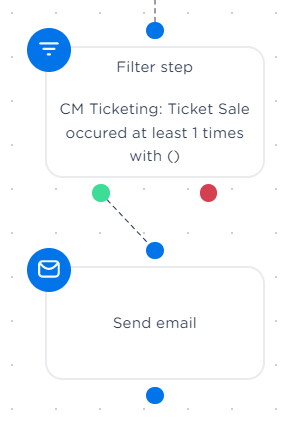 For example, if you only want to continue the workflow with the people that have bought at least 1 ticket you can set the filter like this: