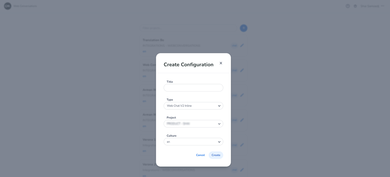 - When all fields are filled in, create on ‘Createʼ. This will redirect you to your new created Web Conversations configuration.