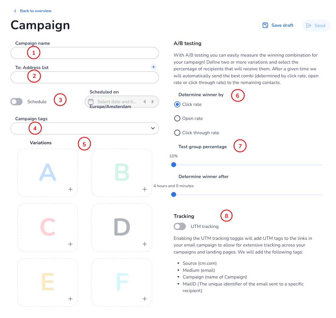 If everything is filled in, you can send or schedule the A/B-testing. In the meantime you can save the campaign as draft.