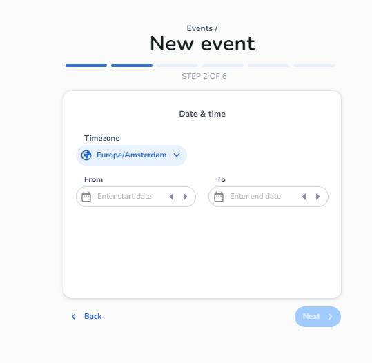 Select the start and end date and the right time zone the event will be hosted in.