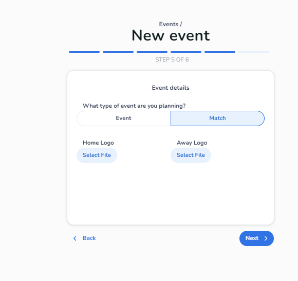 Choose between event or match (only change at match is 2 logos instead of 1)