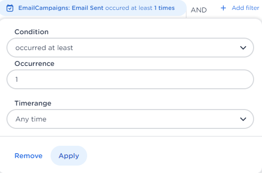 Add additional AND/OR filters to finalize the filters for the segment that you want to make.