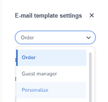 After creating a new template, click on the blue settings icon in the top right to open settings. The first step is to select which email template you want to customize. You can choose from: