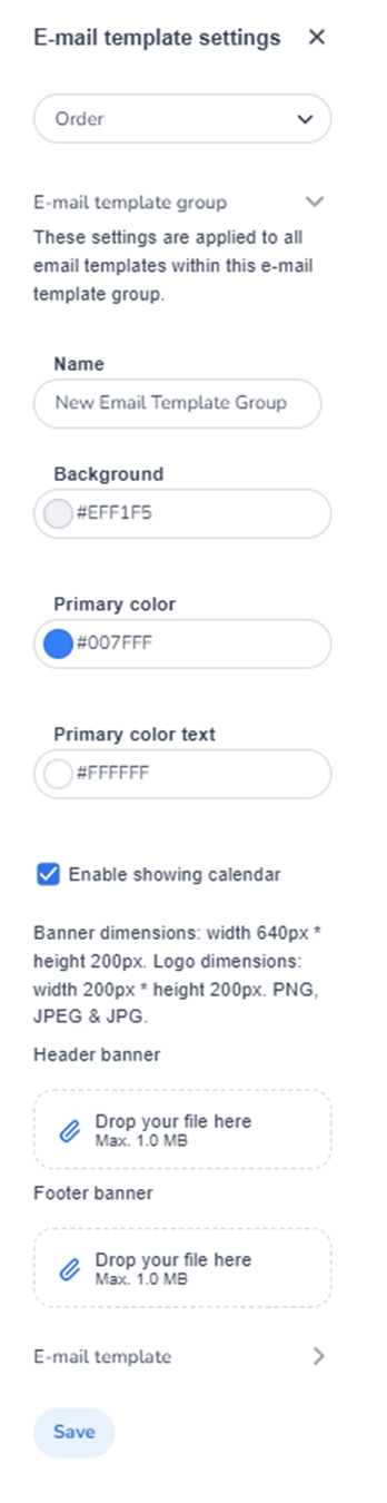 Additionally, you can add a header banner and footer banner. Make sure the images meet the specified dimensions and file size.