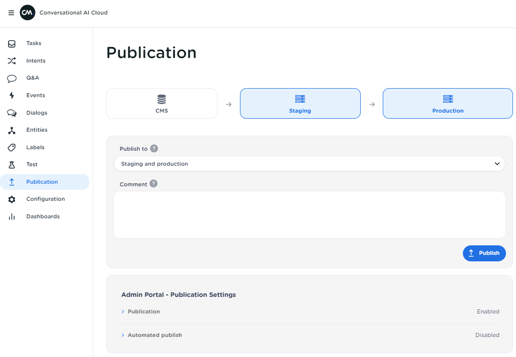 Below you find a video about the Publication Feature in Conversational AI Cloud.