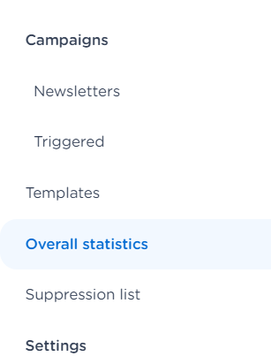 When clicking on the left menu item "Overall statistics" you can review an overview of bundled statistics over all sent emails of the past 30 days.