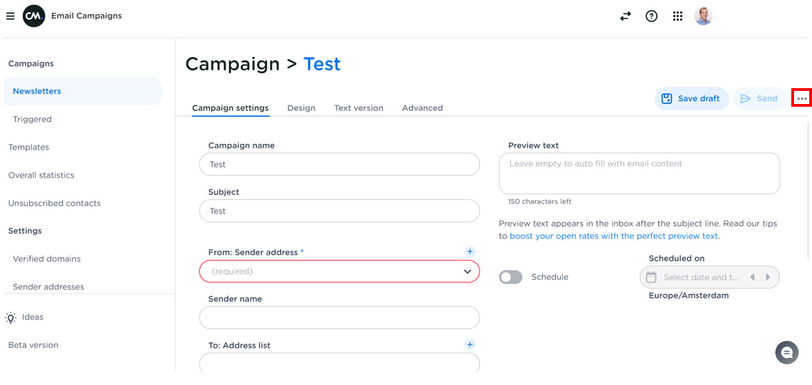 Go to your email campaign in the settings menu and select the 3 dots on the right (see the red quare below)