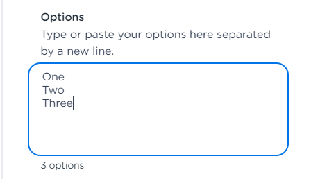 Dropdown: Use this element when you want to ask visitors a multiple choice question. A new option is created with every line break in the text.