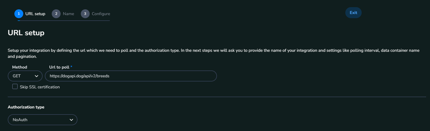 After setting up the API details, it’s time to give the event type a name. As our example is in loading dog breeds, the event name would be “DogBreed”.