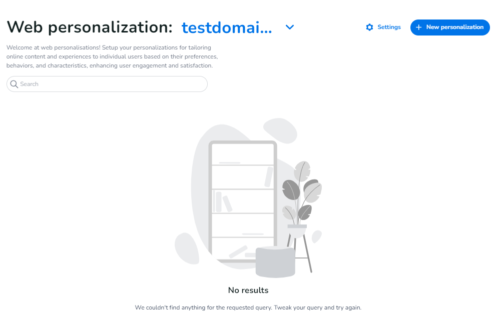 Click on 'New personalization' and assign a name to your personalization for easy tracking and include a brief description to provide context and clarity. This way, you can easily trace and understand the purpose of each personalization you set up.