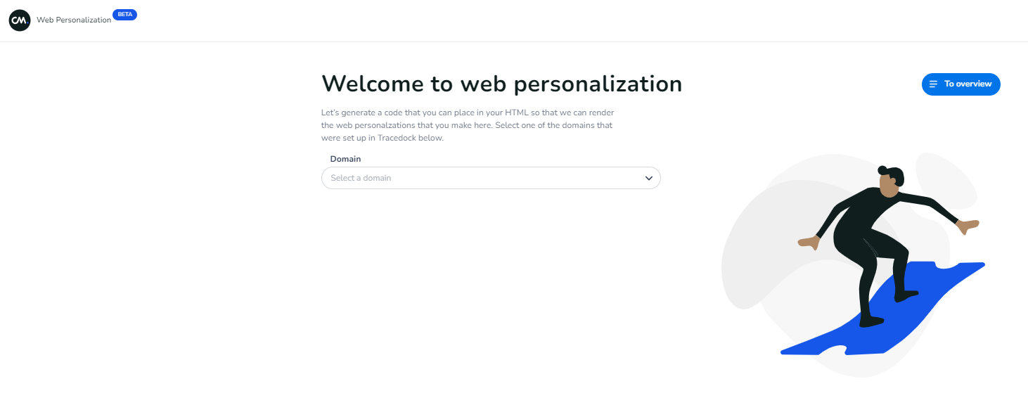 Select the domain (as setup in Tracedock/webtracking) for which you want to setup personalization